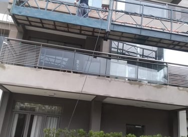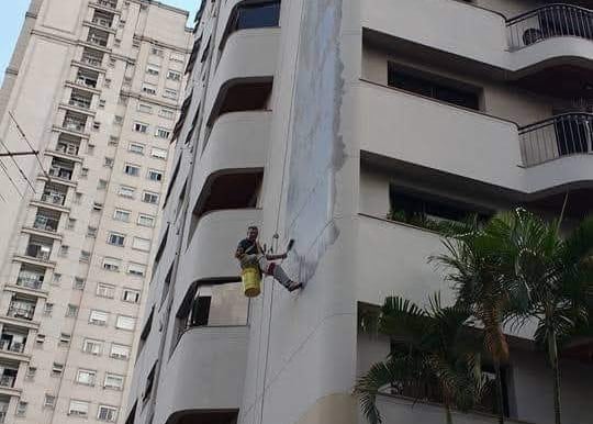 Realizamos serviços de pintura de fachadas com cadeirinha e balancim, garantindo acabamento impecável.