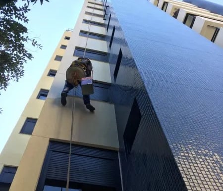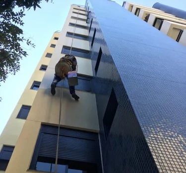 Realizamos limpeza completa de fachadas com técnicas seguras e eficientes, utilizando cadeirinha, balancim e equipamentos apropriados para cada tipo de revestimento.