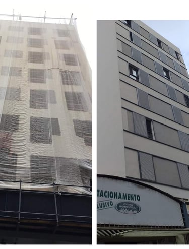 Especializados em restauração de fachadas, recuperamos a beleza, segurança e integridade estrutural do seu imóvel. Atuamos na correção de trincas, infiltrações, descascamentos, desgaste por ação do tempo e poluição, utilizando materiais de alta qualidade e técnicas adequadas a cada tipo de revestimento.